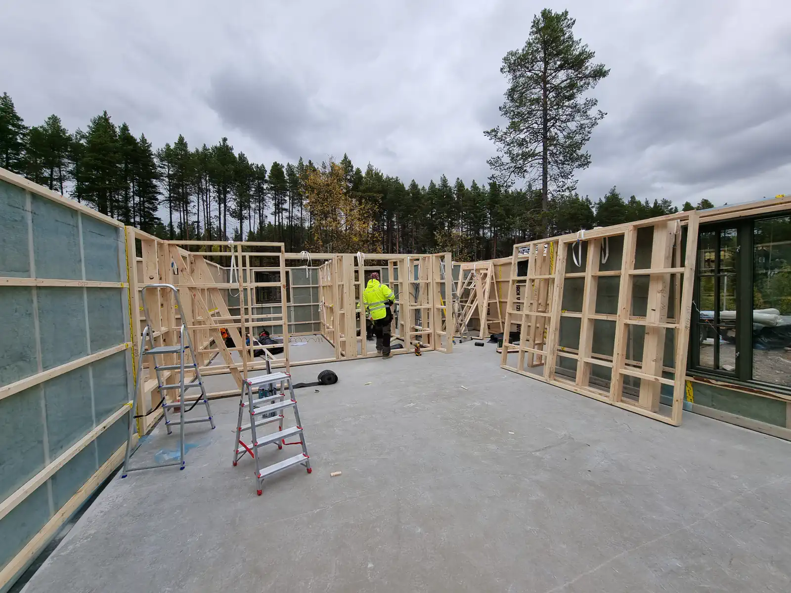 Production of wooden frame and log house parts in the factory
